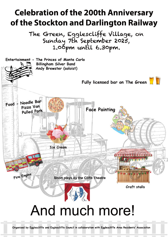 Egglescliffe & Eaglescliffe Council, together with the Egglescliffe Area Residents’ Association (EARA), invite you to a special Bicentenary Fete on Egglescliffe Village Green, Sunday 7th September 2025.